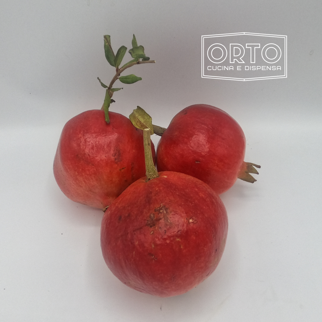 Il melograno è un frutto autunnale, composto da una scorza rossa all'interno della quale si raccolgono i succosi arilli rossi, che sono la parte edibile che si sviluppa attorno ai semi.